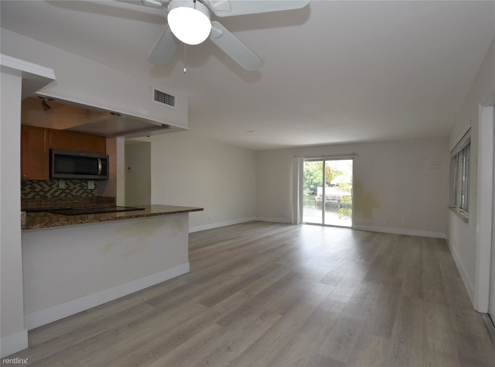 Wow! Amazing views of the canal or river from every room in this 1st floor renovated 2/2 unit with a private deck and yard. Freshly painted and newer white washed wood look floors. Open kitchen with granite countertops, newer cabinets, and appliances. Washer & dryer in unit. Both bathrooms tastefully renovated. Spacious living/dining area. Both bedrooms large enough to comfortably hold a king bed. Master has a large walk-in closet. Hurricane impact windows throughout. Outdoor space makes this unit unique and makes it feel like your living in a single-family home. Great pool area and unit comes with 2 parking spaces. The building sits at the end of a dead-end street lined by waterfront single-family homes. Sorry, Association does not allow pets.